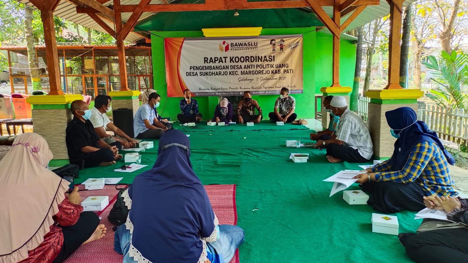 Badan Pengawas Pemilihan Umum (Bawaslu) Kabupaten Pati kembali melaksanakan kegiatan Rapat Koordinasi Pengembangan Desa Anti Politik Uang di Desa Sukoharjo Kecamatan Margorejo, Kamis (2/9/21)