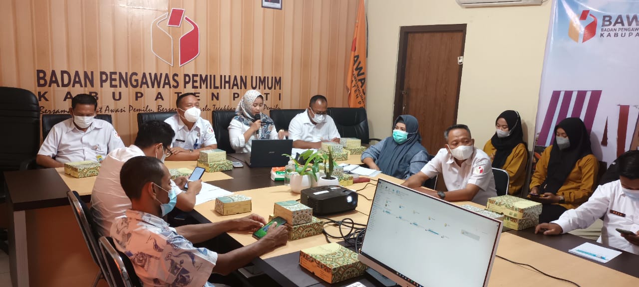 Pati, Badan Pengawas Pemilihan Umum Kabupaten Pati mengadakan Rapat Kerja Pengawasan Pemutakhiran Data Pemilih Berkelanjutan (PDPB) bersama Komisi Pemilihan Umum (KPU) Kabupaten Pati, Dinas Kependudukan dan Catatan Sipil Kabupaten Pati, serta perwakilan dari Organisasi Masyarakat Disabilitas pada, Rabu (9/3/22).