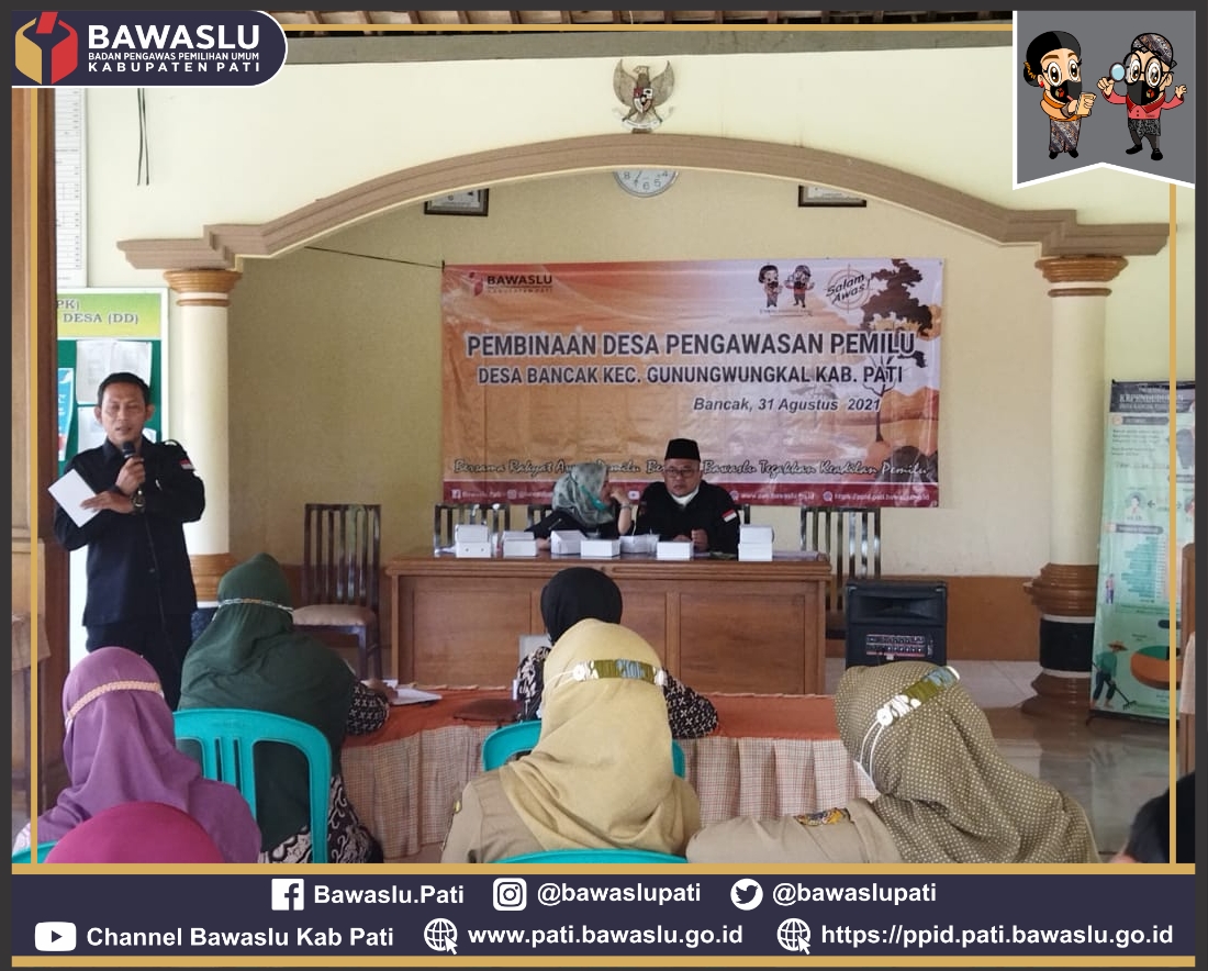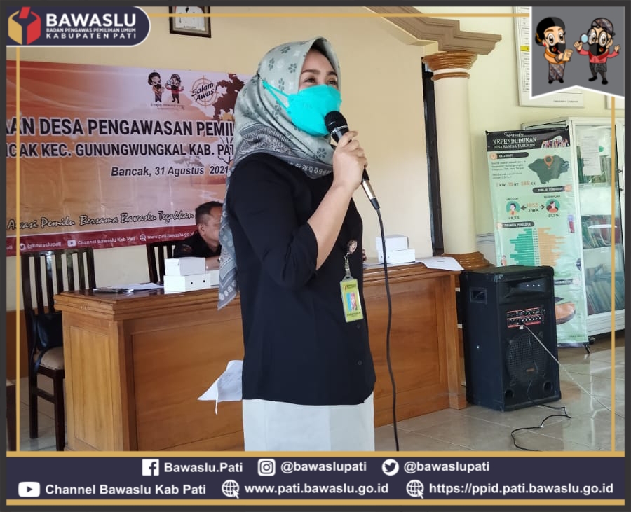 Badan Pengawas Pemilihan Umum (Bawaslu) Kabupaten Pati kembali melaksanakan kegiatan Pembinaan lanjutan Desa Pengawasan Pemilu di Desa Bancak Kecamatan Gunungwungkal, Rabu (31/8/21)