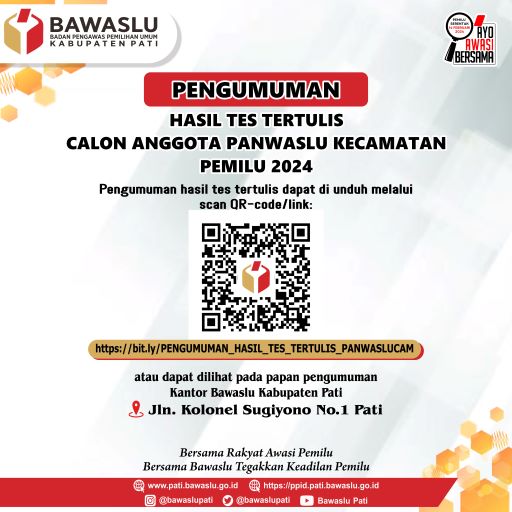 Pengumuman Hasil Tes Tertulis Calon Anggota Panwaslu Kecamatan Pemilu 2024