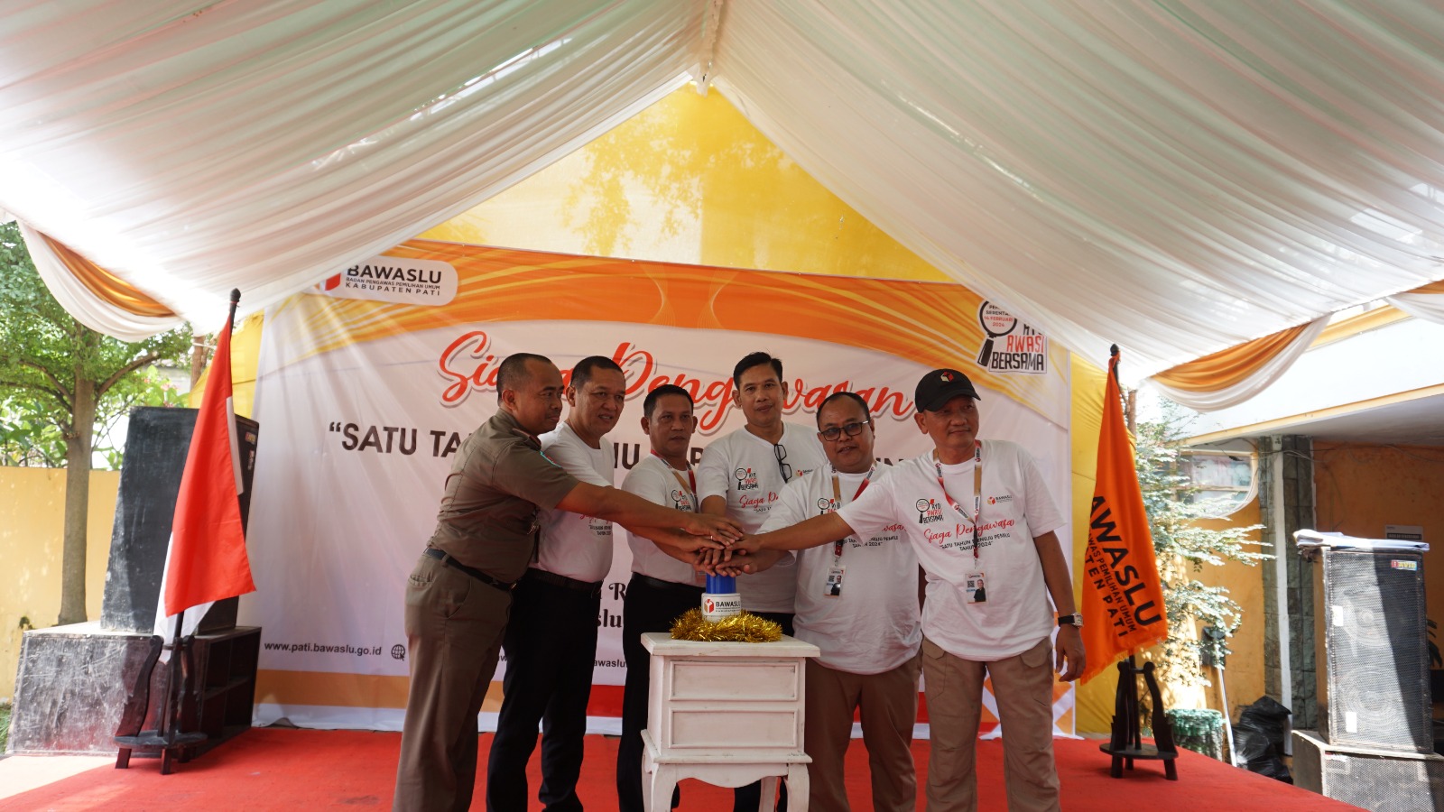 Pati - Badan Pengawas Pemilihan Umum (Bawaslu) Kabupaten Pati meningkatkan integritas kinerjanya dengan mengadakan kegiatan Siaga Pengawasan Satu Tahun Menuju Pemilu 2024 yang dilaksanakan di halaman Kantor Bawaslu Kabupaten Pati, pada selasa (14/2/23).