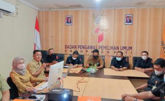 Pati, Badan Pengawas Pemilihan Umum Kabupaten Pati melaksanakan kegiatan rapat koordinasi Penanganan Pelanggaran bersama Kepolisian, Kejaksaan, Dinas Perhubungan, Satpol PP, serta Badan Kesbangpol pada Rabu (20/4/22).