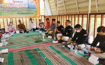 Pati, Badan Pengawas Pemilihan Umum (Bawaslu) Kabupaten Pati kembali melaksanakan kegiatan Pengembangan Desa Anti Politik Uang di Desa Kertomulyo Kecamatan Trangkil. Kegiatan Sosialisasi ini dilaksanakan di Gasebo Pantai Kertomulyo Trangkil (12/10/21).