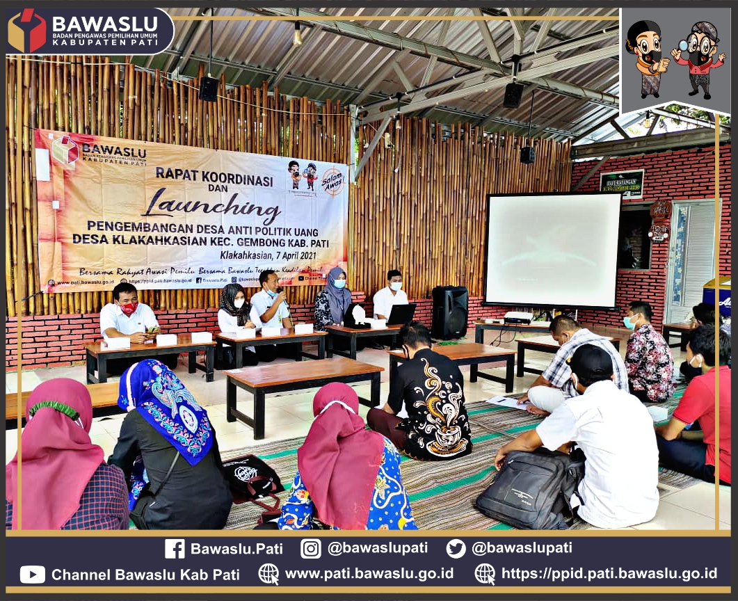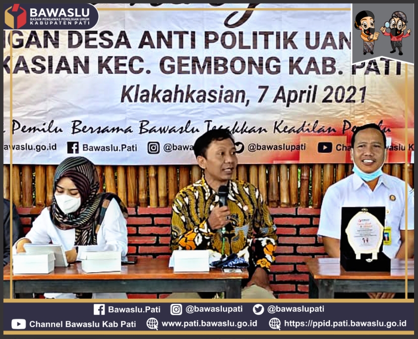 Dihadiri pula Anggota Bawaslu Provinsi Jawa Tengah Heru Cahyono beliau menyampaikan pentingya anti politik uang dimulai dengan cara pencegahan. Agar ke depan kehidupan demokrasi di Desa Klakahkasian menjadi kawasan bebas politik uang sehingga Desa Klakahkasian menjadi roll model sebagai desa pelopor Anti Politik Uang di Kabupaten Pati.