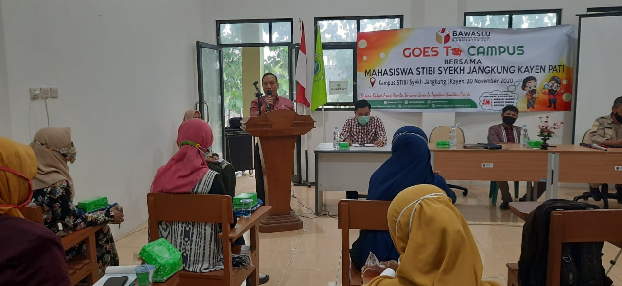 Ahmadi selaku Ketua Bawaslu Kabupaten Pati mengajak kepada para Mahasiswa untuk ikut serta berperan aktif melakukan pengawasan Partisipatif dan juga mengetahui bangaimana cara melakukan pelaporan jika terjadi pelanggaran dalam Pemilu maupun Pilkada.