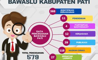 Pati – Bawaslu Kabupaten Pati melakukan berbagai upaya pencegahan dalam menjalankan fungsi pengawasan. Terhitung mulai awal tahapan Pemilu 2024 berlangsung sampai dengan periode saat ini tercatat ada ratusan pencegahan yang telah dilakukan.