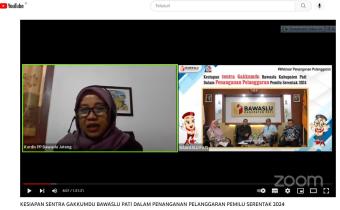 Pati- Badan Pengawas Pemilihan Umum (Bawaslu) Kabupaten Pati melaksanakan kegiatan webinar penanganan pelanggaran pemilu tentang kesiapan Sentra Penegakan Hukum Terpadu (Gakkumdu) dalam menangani pelanggaran Pemilu Serentak 2024, pada (25/8/22)
