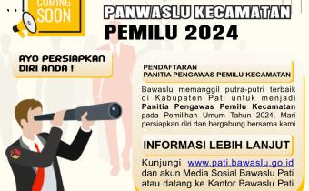 Hai #sahabatbawaslu semua Kalian Putra/Putri terbaik Kabupaten Pati, siapkan diri kalian untuk bisa bergabung bersama Bawaslu Kabupaten Pati menjadi Panwaslu Kecamatan pada Pemilu 2024.