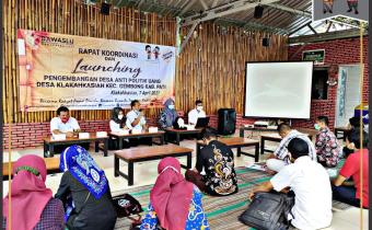 Bawaslu Pati - Ketua Bawaslu Kabupaten Pati Ahmadi bersama anggota Bawaslu Pati lainya lakukan sosialisasi kepada masyarakat dengan melaunching Desa Anti Politik Uang Desa Klakahkasian Kecamatan Gembong Kab.